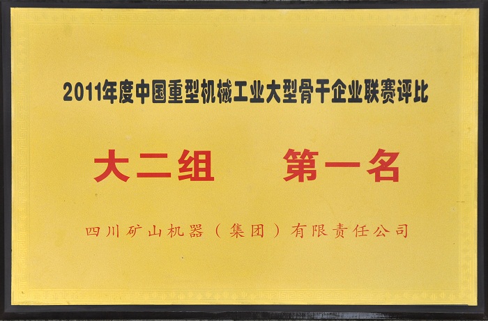 中國重機(jī)協(xié)會主持召開的2011年度中國重型機(jī)械工業(yè)大型骨干企業(yè)廠際聯(lián)賽評比中,川礦集團(tuán)榮獲“大二組”第一名。其中“總資產(chǎn)貢獻(xiàn)率”、“成本費(fèi)用利用率”、“全員勞動生產(chǎn)率”、“工業(yè)經(jīng)濟(jì)效益綜合指數(shù)”、“鋼材利用率”、“人均創(chuàng)利稅”、“銷售利潤率”、“單位工資創(chuàng)造工業(yè)增加值”、“工傷事故死亡人數(shù)最低”九個(gè)單項(xiàng)指標(biāo)列聯(lián)賽第一名。