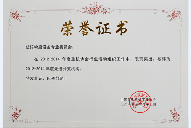 2015年5月11日至13日,以“適應(yīng)新常態(tài),尋找新動力,謀求新發(fā)展”為主題,中國重型機(jī)械工業(yè)協(xié)會六屆四次會員代表大會暨理事會在北京順利召開。會議審議并通過了常務(wù)副理事長李鏡作的《在新常態(tài)中創(chuàng)出行業(yè)發(fā)展的新空間》工作報告、秘書長岳建忠作的《財務(wù)報告》,表彰了優(yōu)秀分支機(jī)構(gòu),我破碎粉磨設(shè)備專業(yè)委員會受到總會的表彰。
